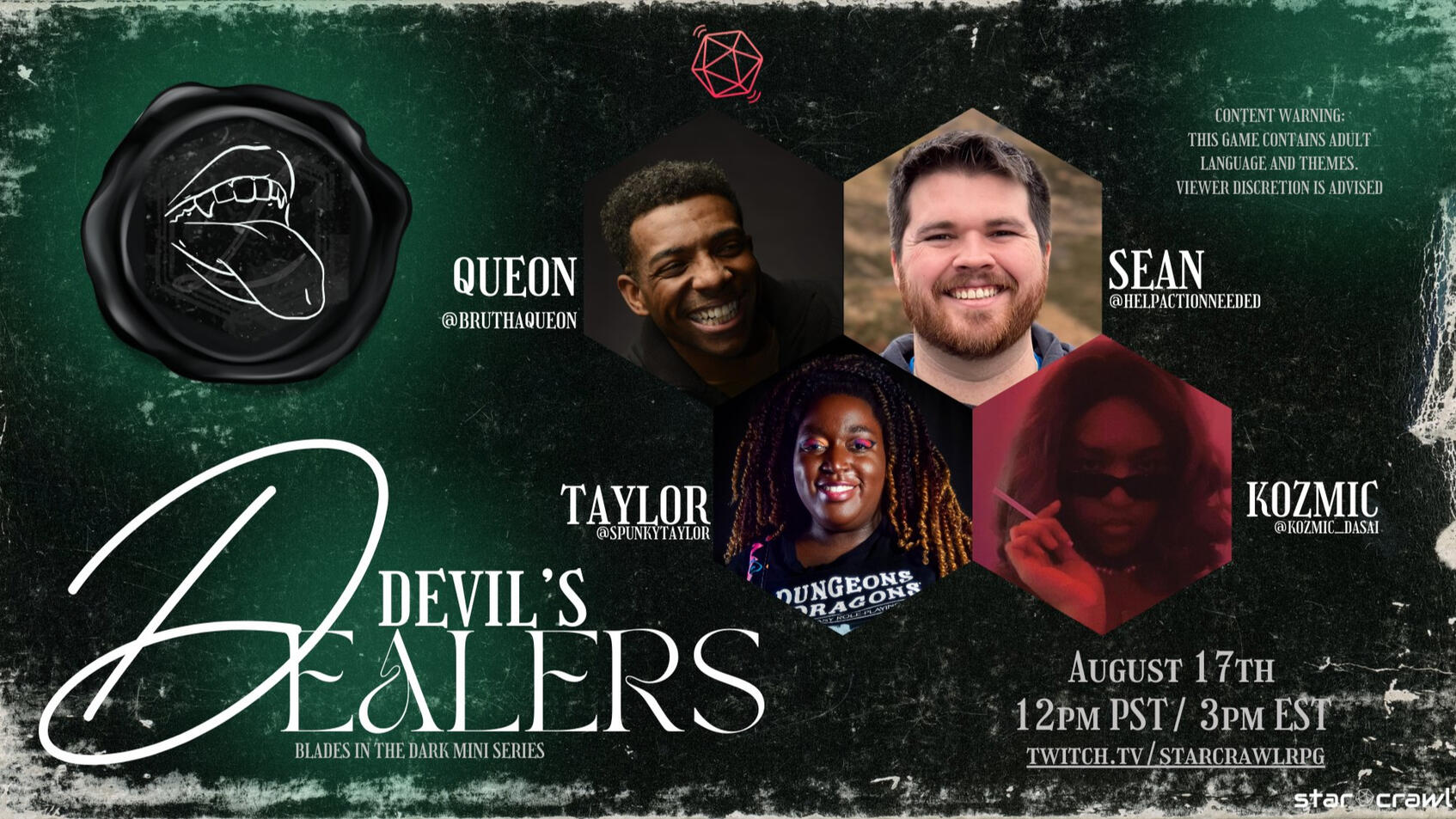 StarCrawl RPG is a community-focused TTRPG channel dedicated to creating inclusive and unforgettable tabletop role-playing experiences. POC led and produced, we are committed to crafting emotional, fantastical, and enchanting stories that connect our diverse community across the multiverse. Join us every Saturday at 3pm ET as we embark on evocative quests, building worlds and characters together.