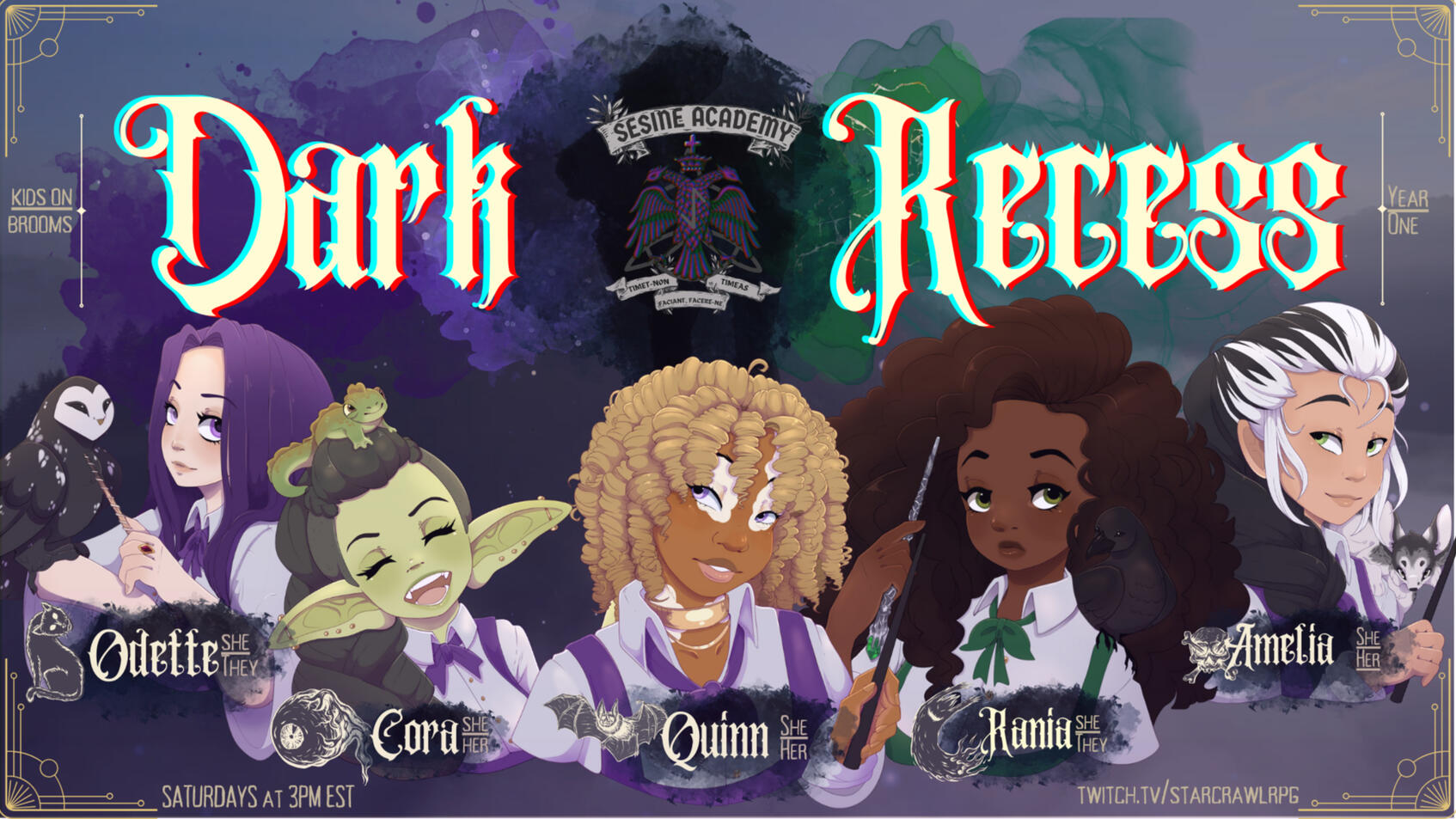 𐌃𐌀𐌐𐌊 𐌐𐌄𐌂𐌄𐌔𐌔 is our current campaign that follows five magic ghoulies or the Coven on their first year at Sesine Academy, a community built world with dark fantasy and cosmic horror. Start here to join our first campaign!